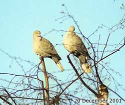 Thank you for following my diaries - I hope you have a good Christmas. Of all mornings to decide to rain - no chance of a white Christmas! At 10am it is pouring down and out Collared Doves are using it to take a shower. They are perched in the tree, as photographed a couple of days ago, and stretching one wing at a time up almost vertically. After five or so seconds they resume preening. By 10pm the skies were clear and the temperature had dropped to freezing!