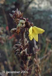 Both of the 'new' Blackbirds have been feeding here today, both on the ground and taking berries on the Hawthorn. Not a wild flower, but I thought I should include this image of a Forsythia flower. I noticed half a dozen of the blossoms open this afternoon, giving one of the few glimpses of colour in the garden today (other than the haws and rose hips). The buttercup bud has refused to open, although it still looks as though it could burst open at any moment - perhaps next year! In case I do not add to the entry before midnight (GMT), I wish any readers of my diaries a |