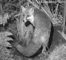 Another look at the area this morning reinforces my theory that the caterpillars were the target. I could not seen any of them last night. To give an idea of scale in the captured image, the stepping stones being crossed by the fox measure 17in (43cm) across. This would make the fox about 47in (118cm) long (nose to tail). A brief moment of excitement in the garden this morning when a Sparrowhawk made its appearance with a pair of Jays following close behind. After causing a brief moment of panic the trio left empty handed(?). As I write this the birdbath is rather crowded with a mixture of Sparrows and Starlings - there must be a couple of dozen of both feeding here at 1pm. At 9pm I checked around the pond and found just one caterpillar feeding. I have set up the CCTV camera to try to get a lower angle view of any fox that passes by the pond. 6 December - Too busy doing other things today to pay any notice to the garden, but I did check the video recordings of last nights activities - one cat and one moth in eight hours of recordings!