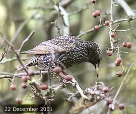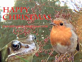 23 December - The coldest start to a day so far this Winter with the outside temperature registering as -3C by the house and -7C by the pond. It was a mrning for hot water in the bird bath. The song Thrush was here numerous times in the early morning (I left home about 10am and did not return until late this evening). 24 December - Typically British weather meant that by this morning the frost that was on the ground last night had given way to dampness, with water on top of the ice as a result of early morning rain. By the end of the day all the ice on the pond had disappeared, and at 9pm the temperature outside was +7.5C and it is windy! Since I last mentioned it there has been no further digging by a fox. On the plant front, the last of the Red Campion and Selfheal flowers disappeared in the last few days, although there are still a few White Dead Nettles in bloom. I have not yet had chance to search for further evidence of next Springs plants making their appearance.