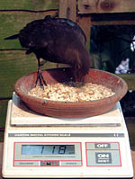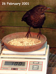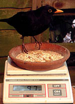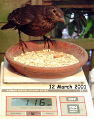 ivy tree. 11th - Song thrushes were feeding again. 12th - The female blackbird has put on 16g