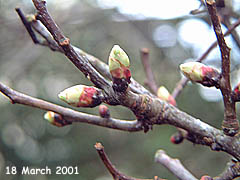 Despite the cold, I saw my first bumble bee of the year at lunchtime. I had a close look at the hawthorn this afternoon. Some of the buds on it are quite well developed (see right). 19th - We are having some sunshine today and