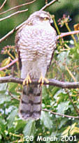 17th - A cold, dull and very damp day has meant another quiet day. I caught only brief glimpses of greenfinches, great tits and the song thrushes in addition to our usuals. The highlight came in the early afternoon when the sparrow hawk arrived and spent some time trying unsuccessfully to scare some sparrows out of the berberis bush. Unfortunately, by the time I grabbed my camera it had given up, perching itself on top of a tree behind the leylandii.