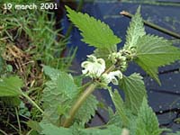 in response to a visit to the garden by the sparrowhawk. I have not seen any dunnocks during the last week. This is unusual as they are normally regular visitors below the hawthorn. 19th - On a cloudy, cold morning with a little snow (1C) 30+ sparrows feeding Also, a pair of great tits back after an absence of a couple of weeks. A solitary goldfinch spent a couple of minutes on the bird table. The blue tits' daytime activities continue around and in the bird box. The collared doves seem to be starting the preparation of their usual roosting/nesting site up in the leylandii. 22nd - A dull, wet day saw only limited activity in the garden. However the late afternoon saw a prolonged visit by a wren to the ponds. It is becoming a regular at the small pond where it goes down to the water's edge in the shelter of the iris plants. After bathing it returned to the Hawthorn tree to preen before going back down to hunt amongst the irises. It then went on to the big pond and spent some time there before disappearing back into the bushes. 30th - Over the last couple of days a small number of bits of straw have been brought into the BT nestbox. No roosting as yet. Still no sign of any frogs. Numerous snowdrop flower buds but none open yet. The robin pair are often together now, especially when mealworms are offered. I have seen no more grass gathering