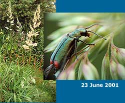 Over the last few days I have seen a few damsel flies, but have yet to get close enough to photograph one. The blackbirds have become a lot more relaxed(?) now with squabbles happening only rarely. The pair seem to be together most of the time. I am not sure if the female has in fact abandoned her recent attempt at nesting. The male robin only appears occasionally - I saw a juvenile down feeding under the Hawthorn on Monday. The Blue tit family seems to have broken up. While the juveniles are about, I no longer hear the 'feed me' calls and they are largely ignored by the adults. The younsters will take mealworms for themselves now, although they seem uncertain as to how they should deal with them. 29 June - No pictures today, but a few comments about bird activity. A song thrush made a brief appearance for the first time since March. A juvenile Robin was down feeding under the Hawthorn again. There are definite flashes of red on its breast now. I shall have to try a get a picture of it. The Blackbird pair are down on the ground feeding frequently but the female has definitely abandoned her nest and shows no sign of building another. The seed feeder was very busy today, with lots of sparrows in the hawthorn and frequent visits by Greenfiches and a female chaffinch. There was an almost constant Starling presence in the garden today, with the juveniles looking very plain compared with the adults.