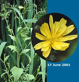 17 June - Just a short entry today to announce the opening of the first flower on a Nipplewort plant (Lapsana communis) that I have allowed to grow next to the small pond. There are quite a few flower buds in branched clusters. The flower is about 16mm across. I saw only the second ladybird this year in the garden today even though here is plenty of ladybird food (aphids) on the stinging nettles and other plants. Back on the 5th I took a photograph of a burrow made by a solitary bee. I should have said that within a day I found the entrance sealed. There seems to have been a pause in the activities of the solitary bees this last week. I have not seen any activity around the bee hotels. While the bumble bees continue to visit the flowers in the garden, I have not seen smaller bees about. There has been a large wasp visiting our potted 'Christmas tree' over the last few days although I have taken no pictures yet. The blue tit family has had a couple of mass feeding sessions and a couple of times there were three adults in the feeder box at the same time. At one time a fledgling entered it and took a while to find its way back out.