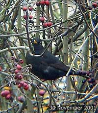 A female Blackbird was seen feeding down on the ground by the Burberris. A Jay spent some time in the Hawthorn in the morning and there were several visits by a Coal Tit to the feeder. Also seen were several Blue Tits and at least one Great Tit. There was a Robin about all day and a couple of Collared Doves spent time on the ground here.