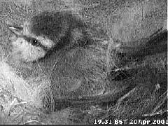 19 April - Today has been a repeat of yesterday with cold, mainly dry weather and only infrequent visits to the box. The day ended again with a prolonged visit, with her apparently settling for the night before suddenly leaving after some 20 minutes.