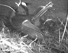 Here is the female during one of her visits on Saturday, bringing in a bit more bedding.