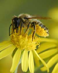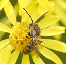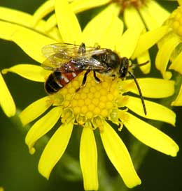 Another possible bee or wasp was spotted on the Ragwort plant that is in full bloom now. I have not yet tried to ID this one. The centre of the flower measured about 8-9mm across.