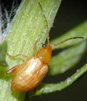 In sharp contrast to the frantic activity of the bees this tiny beetle, measuring less than 5mm long, has spent all day wandering a couple of branches on a Ragwort plant. I will have to add its ID later if I can.