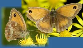 The weather is very warm at the moment and we are seeing some butterfly activity, including this rather ragged Gatekeeper butterfly, feeding on the Ragwort.