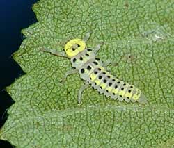 Scanning the Birch leaves by torchlight did not reveal much, but I did spot this solitary larva on the underside of one leaf. It looks like a ladybird larva, although I'm not sure about its colouring.