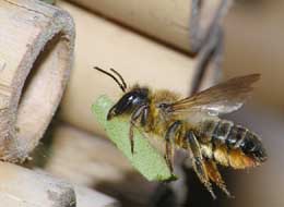 I spent a couple of hours watching this spot in the hope of getting a picture of it returning with pollen, but instead watched as it brought 25-30 pices of leaf instead!