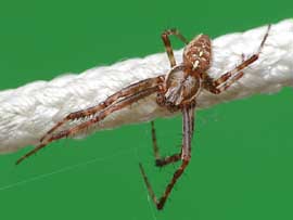 I had to wait ages for this male spider to take a rest from its dashing around on the timber of the caravan shelter. The string it is posing on has a diameter of 5mm. ID still to be established.