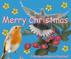 ![]() Here is my Christmas card to you, with thanks for your visits and support through the year. Click on it to see a larger version. I would have put snowflakes on it, but with the mild weather I decided that flowers seemed more appropriate. I hope you all have a happy Christmas. We are having a family get together for Christmas dinner, so a day of happy chaos is in store! At 8.30am it's fine, and although the sky is cloudy it is not a dull start to the day. The temperature is 9C outside.
