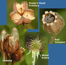 While some plants are just coming into flower, ther are other plants which are already bearing seeds. Here are a few of the seed heads that in evidence here today. While the Wood Avens' seed head is still ripening the others are already using the wind to help the scattering of their seeds.