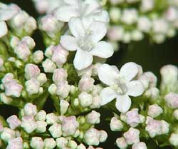 At the bottom of the garden the first of the Valarian (Valeriana officinalis) plants that I bought in April is now in flower. The flower stalk is lying across the ground so that the flowers are partly hidden by other plants.