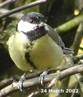 There were a couple of bird moments to note today. Firstly, I looked out the garden just as a Jay left and headed for the Brickfields Country Park. A Rook landed in the top of the Leylandii and seemed to be after nesting material. Yesterday I saw one fly over with a large twig. The tree tops were also visited by a trio of magpies that seemed to be playing follow-the-leader. The robin continues to feed without taking anything away, and I don't remember seeing the female today. 23 March - Very little attention paid to the garden today, but a couple of things to note. The female Sparrowhawk paid a visit (nothing caught) and perched in next door's apple tree. Unfortunately her head was hidden from view so a picture wasn't possible. Also a pair (M and F) of Greenfinches were at the feeder again - the second visit seen this week.