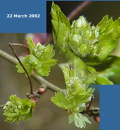 Back on the 11th I included a picture of the Hawthorn buds that were just starting to burst open. Today, on the lower branches I can see not only the leaves opening up, but also groups of flower buds. These are a couple of weeks ahead of last year.