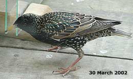 The Starlings are quite regular visitors at the moment. This one spent a minute or so investigating the glass tank which has tadpoles in it.