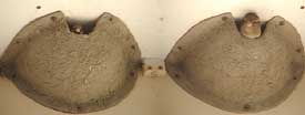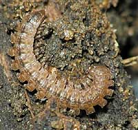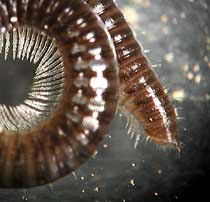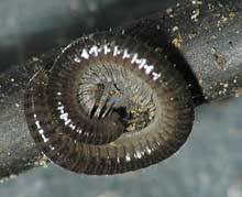 The picture shows the millipede in the coiled position it adopts when disturbed. The head is at the inside of the coil.