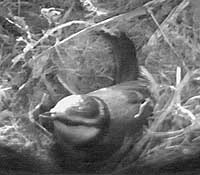 I learnt today that 'my' Blue Tits have been beaten in the 'First Egg Stakes' by a bird in the garden of Elizabeth and Malcom Bigg who live not far from here. They came home from a trip to find two eggs this morning (their website is on my links page). In the evening our female returned to the box briefly just after 7pm. A couple more visits brought soft stuff in before she arrived shortly before 7.30pm and started her settling down routine. Then, as the computer clock showed 7.37pm she was gone! LATE NEWS - at 7.50pm she came back in and left again at 8.05pm!