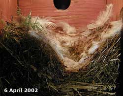 This photograph shows the state of the nest tonight, showing how the sides of the nest have been built up since the last evening picture just three days ago. Click on the image to see a larger version