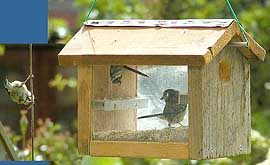 The parents continue to take mealworms away form the feeder. The two linked pictures show one just arrived in the box as another leaves, and then prepares the mealworm on one of the strings that hang near either end of the feeder. The adults are also spending more time at the peanuts and at a feeder that has sunflower kernels in it. Numerous people have e-mailed me about the mealworm feeder. I first mentioned last Spring that it was a design that I found on an American birding site run by Christine Tarski. It has been successful throughout the year and, in the nesting season it has been a great help during bad weather.