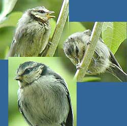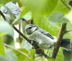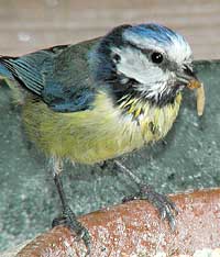 The fledglings have the occasional peck at the tree, but most of the time they are still waiting for their parents to feed them. A lot of preening goes on as they wait. I'm still seeing the parents gutting the larger mealworms before giving them to the fledglings. 30 May - I had lilttle time to watch the birds today as I had lots of sorting out to do before we escape to Cornwall tomorrow. As a consequence there will be no diary entries until after the end of next week. The Blue Tit family was in the garden this morning, with at least one youngster spending time in the Hawthorn. On of the last tasks before we leave tomorrow will be to top up the mealworm feeder. I filled the sunflower kernel and peanut feeders today.