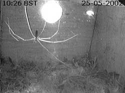 The box is empty again tonight. 26 May - A bright but showery morning and I have not seen or heard the fledglings during the morning. However, dad is still as busy as ever collecting mealworms. He continues to remove the head and guts at this stage, and then flies off down a couple of gardens, much as he did in the daytime yesterday. There have been no visits to the box.