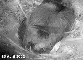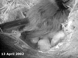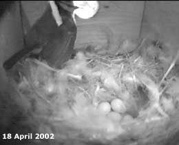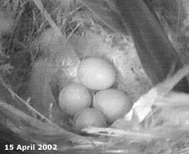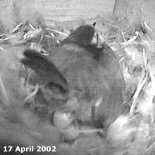 sitting on the eggs during the late morning. She has been fed