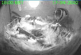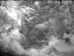 feathers down into the nest cup at 5.55am. Two minutes later