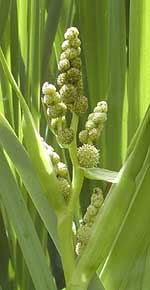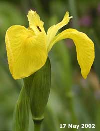 Strong winds meant that today was not the best for taking plant pictures, but I thought I should include this image of the first of our Branched Bur-reed (Sparganium erectum) coming into flower. When the weather calms down I shall take some more detailed close-up images. I first recorded these flowers back at the beginning of June last year. The Flag Irises have got going now with eight flowers opened so far. On the weekend I took out a bit more of the pond weed that was becoming too dense at the side of the pond. This time I did find more newts eggs, on plants around the edges of the mas of weed. When the Blue tits have fledged this week I will be able to give the pond more time, hopefully getting some more close-up photographs.