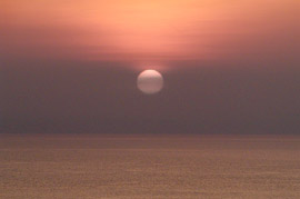 The sky had been hazy all day, and as the sun dropped towards the sea it sank into the murk to create the most sci-fi sunset I have seen for a long time. |