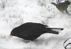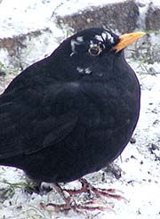 'Our' Blackbirds were here most of the day, but this is a picture of a third - a male with a white tail feather that I had not seen previously. I shall have to watch out for this one in future.