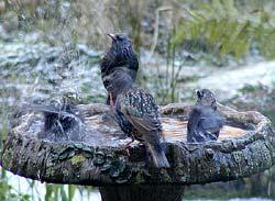 The low temperatures have meant that have needed to pour hot water onto the birdbath several times through the day. The water has been especially welcomed by the Starlings, like this quartet, who have queued to bath.