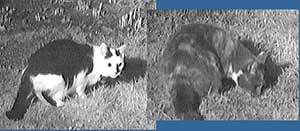 An update on yesterday's diary come in the form of this second picture of the Blackbird with the white tail feather, showing the white feathers around his head. Is this an older individual? There were two very healthy looking (perhaps younger) males here earlier. Videos were recorded through the night again and revealed just one fox visit, just before midnight, and three visits by the black and white cat pictured above.