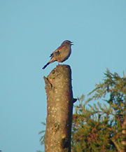 The picture shows a Dunnock, perched high up in the Leylandii and singing away in the early morning brightness. His perch was created when I lowered the height of the Leylandii several years ago. I deliberately left a few of the main trunks standing proud of the new tree-top line. These are often used as high perches.