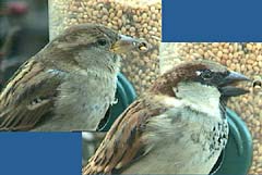 The pictures of female and male (on the right) House Sparrows were taken using a colour CCTV camera that I am testing at the moment before I decide whether to use it in the Blue Tit box. There was a 300mm (35mm camera) lens mounted on the camera, which was linked up to my laptop in order to grab the images. While they are not going to be as sharp as images taken with a still camera, my first impressions of the camera have been encouraging. The next test will be to see successfully it can be used as a webcam. |