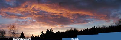 Identifying them was a bit of a problem, but having looked at my Collins Bird Guide several times I think they are young, non breeding Black-Headed Gulls. Typical of these Gulls, the individual in the top right image has a white flash on the outer forewing and no white spots on the wing tip. ![]() This evening nature had the first attempt at a good sunset that I've seen this month. I took the pictures from our bedroom window. The thin line you may see running diagonally across the centre is my short wave antenna (for listening only).