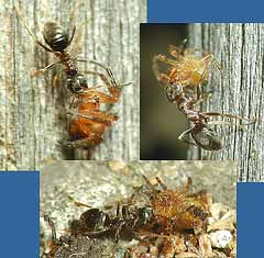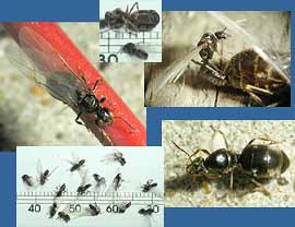 This evening there are females, now without wings, dashing about looking for a suitable place to start a new colony. On the other hand, the males (bottom-left), still with their wings, are lying dead all over the place.