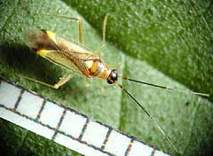 The piercing mouth parts (proboscis) of the bug consist of a pair of very thin tubes called stylets which sit in a grove surrounded by a protective labium. One of the tubes is used to pump saliva down into the plant or animal, and the other draws up the liquid food.