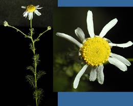 In the top image (see the larger version) you may just make out how the top section of the labium has folded back towards the rear to expose the darker coloured stylets, the lower end of which are penetrating my skin! Last year, the last week of June saw the first appearance in my garden of a Wild Chamomile, also called Scented Mayweed (Matricaria recutita). This year it has appeared again, this time half-hidden under the caravan. I'm not sure when the first flower opened, but it must have been in the last couple of days.