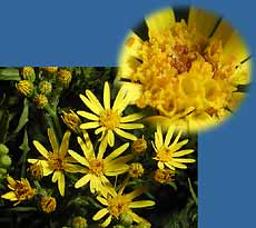 At the end of June I photographed one of the flies that is a constant companion of the Ragwort flowers as they develop. The flies appear to be laying eggs on the buds, but as yet I haven't seen any larvae. However, as the flowers open it is obvious that nearly all of them have some damage, which appears as darker, orange areas in the disc of florets.