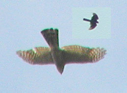 There is no larger version of this picture. It shows a Sparrowhawk riding a thermal higher and higher above the garden shortly after it swooped on the Hawthorn in an unsuccessful attack this afternoon.