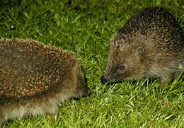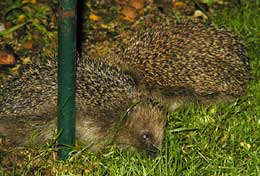 The hedgehog pair met up again tonight. I was out in the garden after 10pm and watching the left hand one. Suddenly the other hedgehog appeared beyond the pond, made a dash past me,through the undergrowth to pass both ponds and straight to the other one, under the hawthorn again. It was almost as though the meeting place was pre-arranged! The two then spent a lot of time with the new arrival taking the initiative, moving round the other one and making lots of noise.
