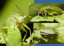 Pictured on the Oak sapling, the top and left pictures show clearly its piercing rostrum with which it sucks juices from plants. In the left-hand image it is stowed away, while the top image shows it lowered to the leaf surface.