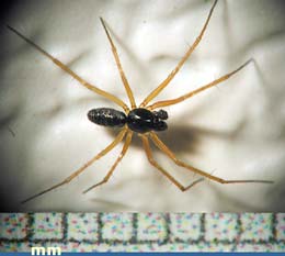 This tiny spider was spotted in our caravan. The pair of large palps suggest that it is a male spider. I haven't yet spent time trying to identify it.