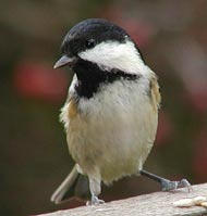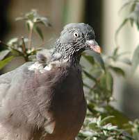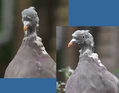 10 November - On dull damp day it has been very quiet in the garden with no sign of either the Coal Tits or the sad looking Wood Pigeon. It has been suggested ( thanks to Malcolm Ogilvie on uk.rec.birdwatching) that the poor thing may well have fallen victim to a bad attack of feather mite. 12 November - After a couple of dismal days the clouds parted and today was bright and sunny. The 'scruffy' pigeon came back again this afternoon and spent ages feeding on the bird table and I was able to get a better image this time. Another explanation has been given for its appearance - Keith (on the uk.rec.birdwatching newsgroup) says -